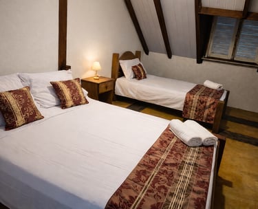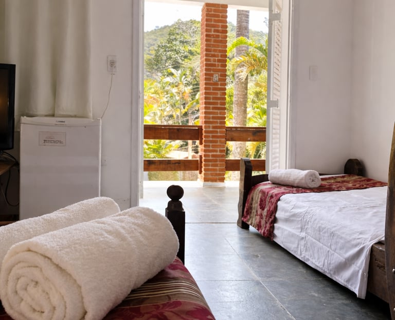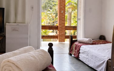 Quarto espaçoso e acolhedor, perfeito para famílias. Inclui acesso à piscina, além de um ambiente pet friendly para seu animal de estimação.